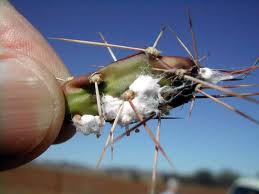 Mealybugs exude a white waxy substance that envelopes their entire pink-colored bodies. Their sap-sucking activity weakens and eventually kills severely infected plants. If not controlled, mealy bugs will very soon form large colonies in protected corners of cluster-forming cacti like rebutia, mammillaria, chamaecereus, and echinopsis. They will thrive in the axils where they are particularly indistinguishable from the axil hairs of some species like mammillaria. They will also locate themselves at the apex or on the stem base of species like echevera, crassula, faucaria, pleiospilos and other succulents.