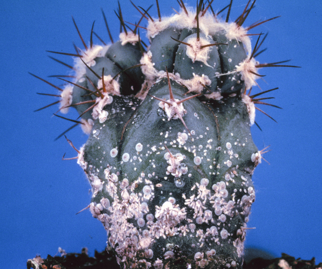 Typically volcano-like bumps over the surface of the plant, which don't move.Scales cause damage by sucking plant fluids from leaves but they also look very unsightly |